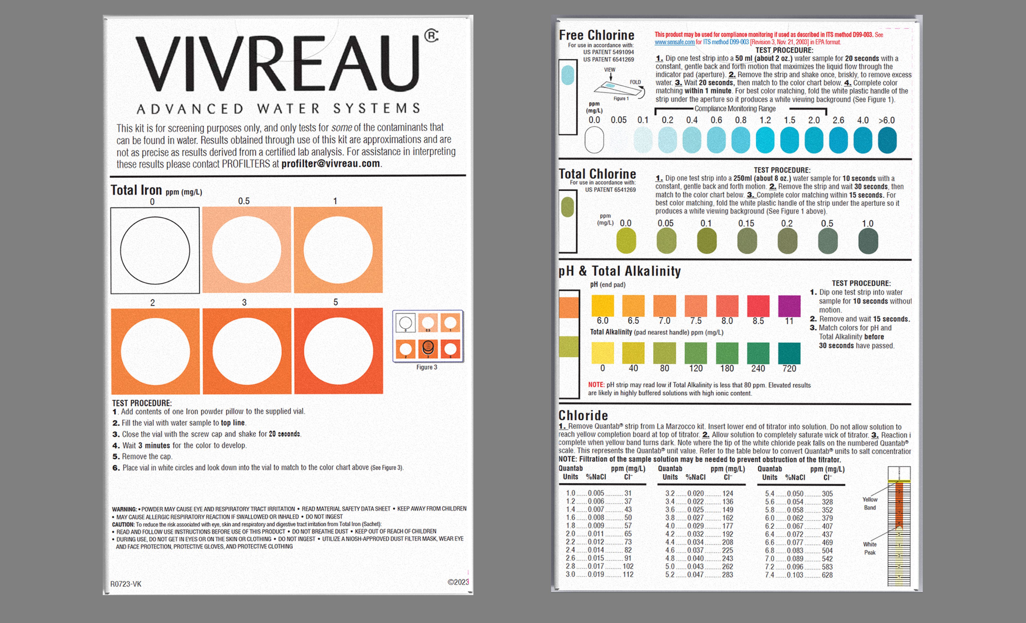 The Vivreau Water Test Strips allow you to test certain parameters of your water to help identify which filtration unit you should use and the size of filtration system you should have.
